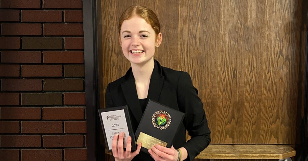 On Friday and Saturday, February 17-18, the Talking Royals competed against 27 other schools in the Eastern Ohio District’s national qualifying speech and debate tournament. Sophomore Megan Marshall placed fifth in Program Oral Interpretation, becoming the first CVCA student to qualify for the National Finals Tournament since 2014. The rest of the team performed well, with highlights including a 9th place finish by junior Public Forum Debate pair Molly Hillyard and Donovan Brown and an Original Oratory semi-final round appearance by junior Avery Langenfeld.