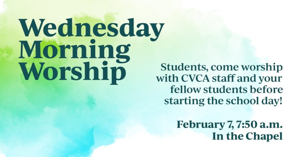 All students are invited to join the CVCA faculty and staff for worship in the Chapel on Wednesday, February 7 at 7:50 a.m.