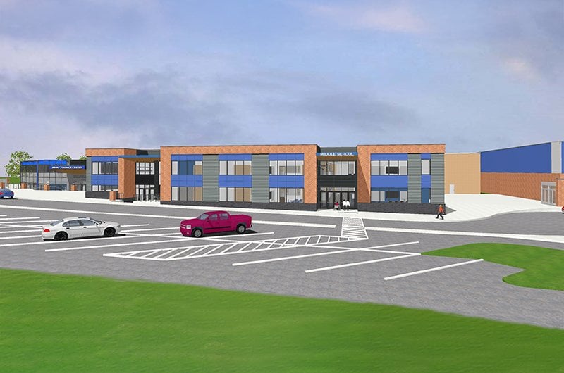 14 New Middle School Classrooms (Including Labs) | Collaborative Learning Spaces | Dedicated Faculty Work Areas | Expanded Kitchen | Additional Locker Rooms | Additional Practice Field | Improved Parking and Traffic Flow